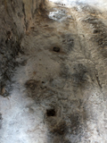 La Galleria minore del Furlo, piano di transito con una serie di fori quadrati, aprile 2012
