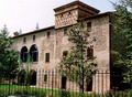 La lapide che documenta l'incendio al "castello" del 1284, subìto da parte dei guelfi riminesi. E' conservata nel Centro culturale di via Garibaldi a Isola del Piano