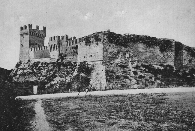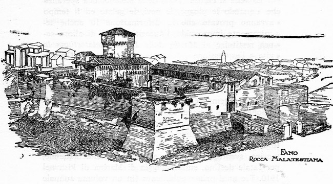 La Rocca Malatestiana di Fano dopo gli interventi di ripristino seguiti al terremoto del 1930 (cartolina d'epoca)