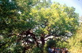 La Robinia (primo piano) e il Cedro del Libano (secondo piano) nel centro storico di Mondavio, aprile 2023
