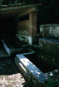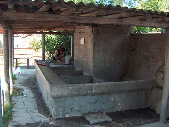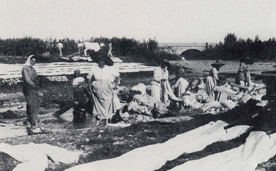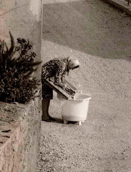 Lavandaia a Mondavio, 1967. Il mastello è già di plastica, ma la tavola è quella di legno