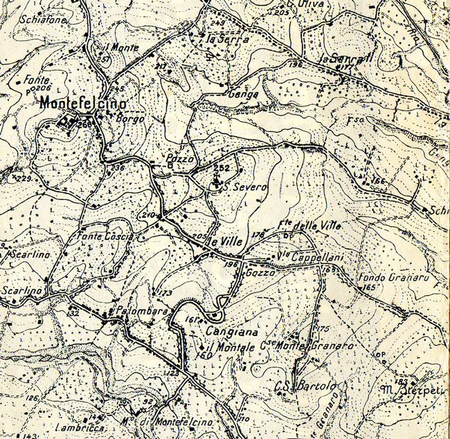 Le Ville e S. Severo, Comune di Montefelcino. Carta IGM 1:25.000 109 II S.E., ricogniz. 1948 (autorizz. IGM n. 4877 del 2-11-1998)