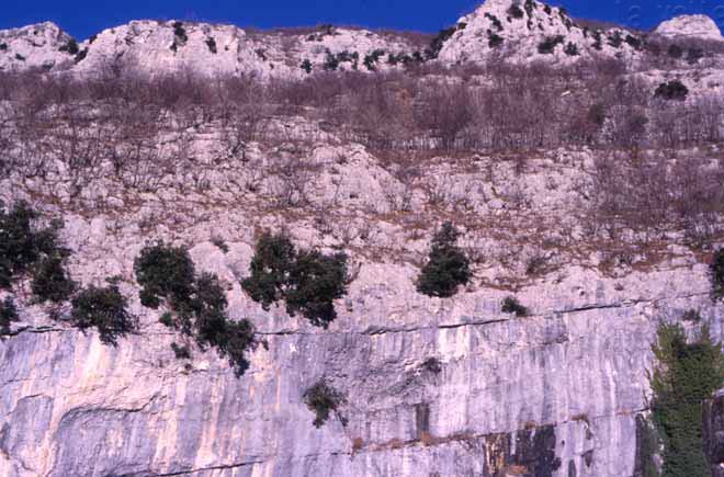 Lecceta sul M. Acuto (Gruppo del Catria). I Lecci sono riconoscibili per il fogliame più scuro