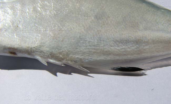 Leccia stella di 13 cm, particolare della pinna anale, mare di Fano presso riva, agosto 2007