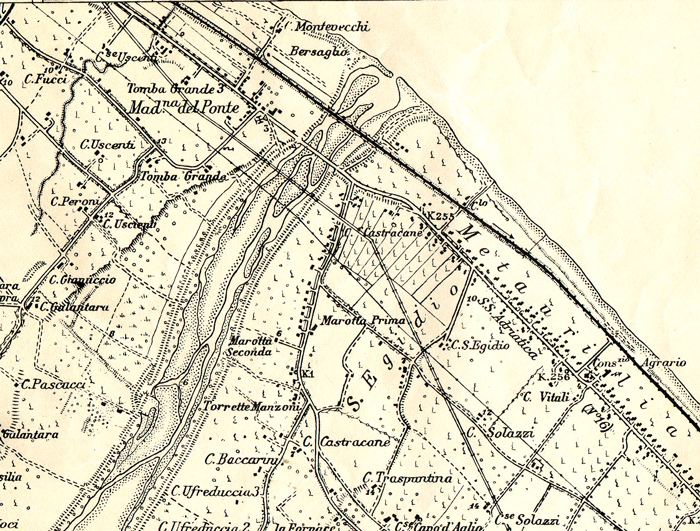 Litorale a S.E. di Fano. Carta IGM 1:25.000 110 IV S.O., aggiorn. 1948 (autorizz. IGM n. 4877 del 2-11-1998)