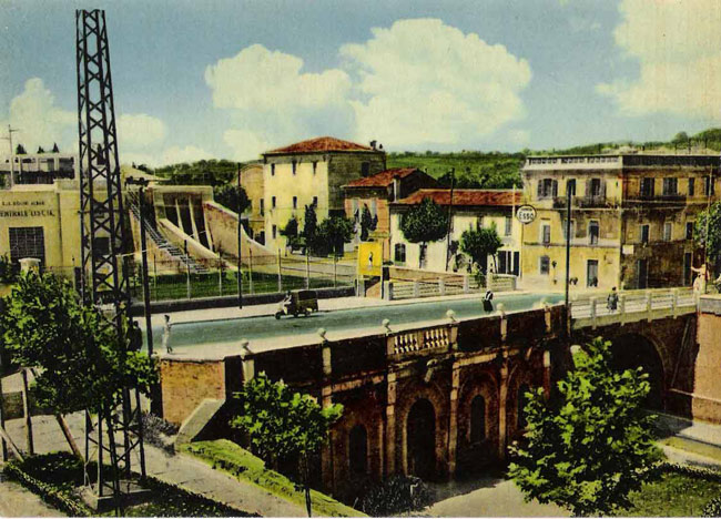 Loggiato tamponato della Darsena Borghese e Centrale idroelettrica della Liscia a Fano, 1960 circa (cartolina d'epoca)
