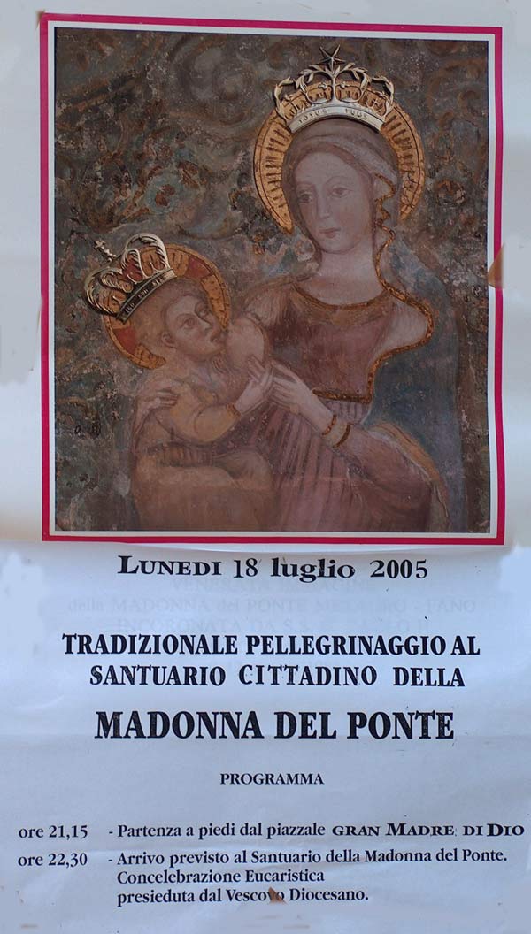 Locandina del pellegrinaggio al Santuario della Madonna del Ponte a Fano, luglio 2005