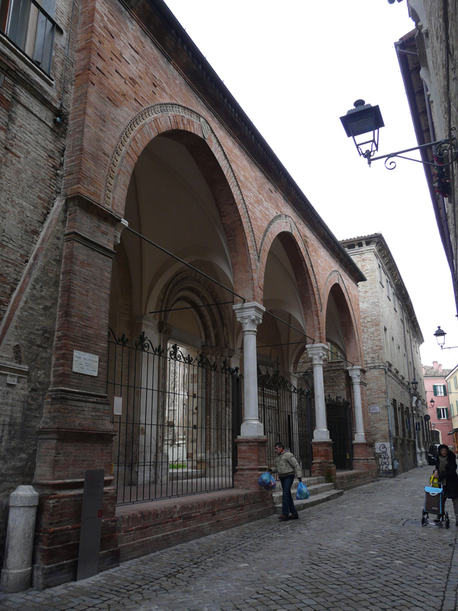 Loggia del Sansovino e ingresso alla Pinacoteca del Museo Civico di Fano, gennaio 2010