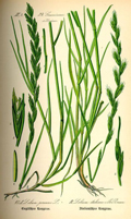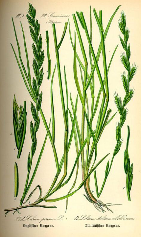 Lolium multiflorum (a destra) e Lolium perenne (a sinistra) (da: Thomé O.W., 1885 - Flora von Deutschland, Österreich und der Schweiz)