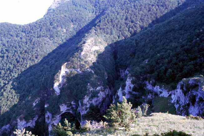 Luogo di nidificazione di una colonia di Gracchi corallini, Forra delle sorgenti del Cesano (M. Catria), luglio 1986