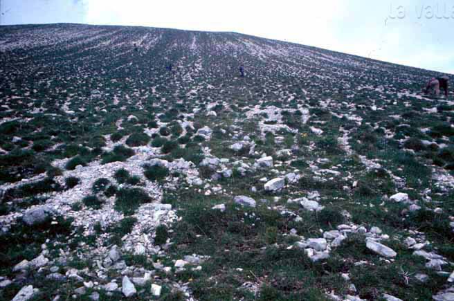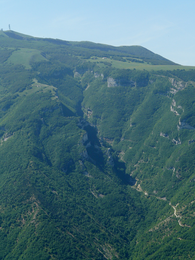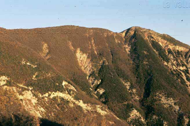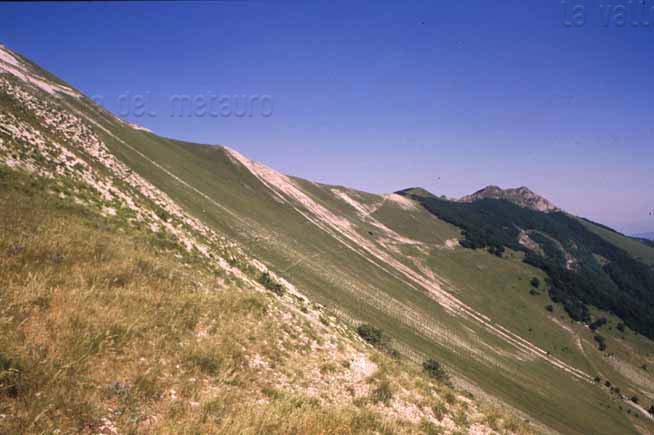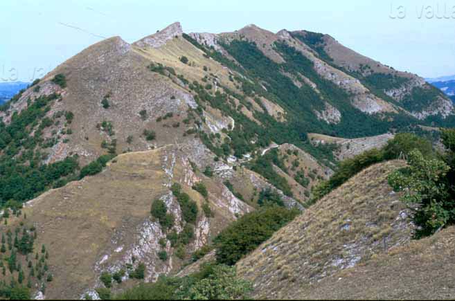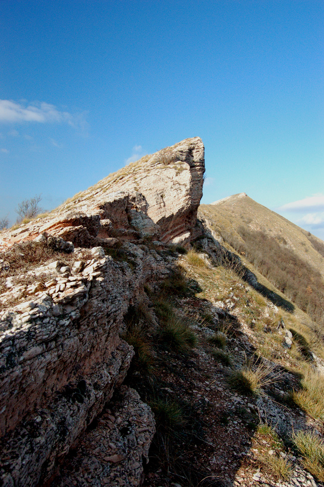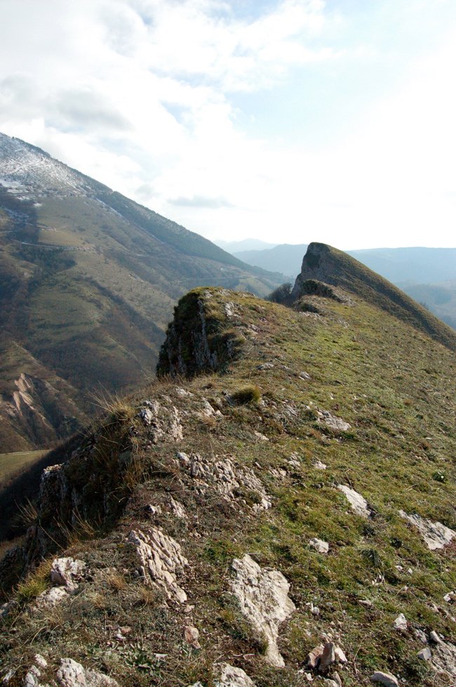 L’hogback di Monte Cardamagna; in evidenza il controllo della stratificazione sul modellamento della dorsale omoclinale, dicembre 2006