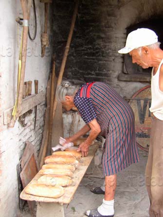 L’atto dello sfornare il pane da parte della signora Barbadoro. Località San Martino del Piano (Fossombrone)