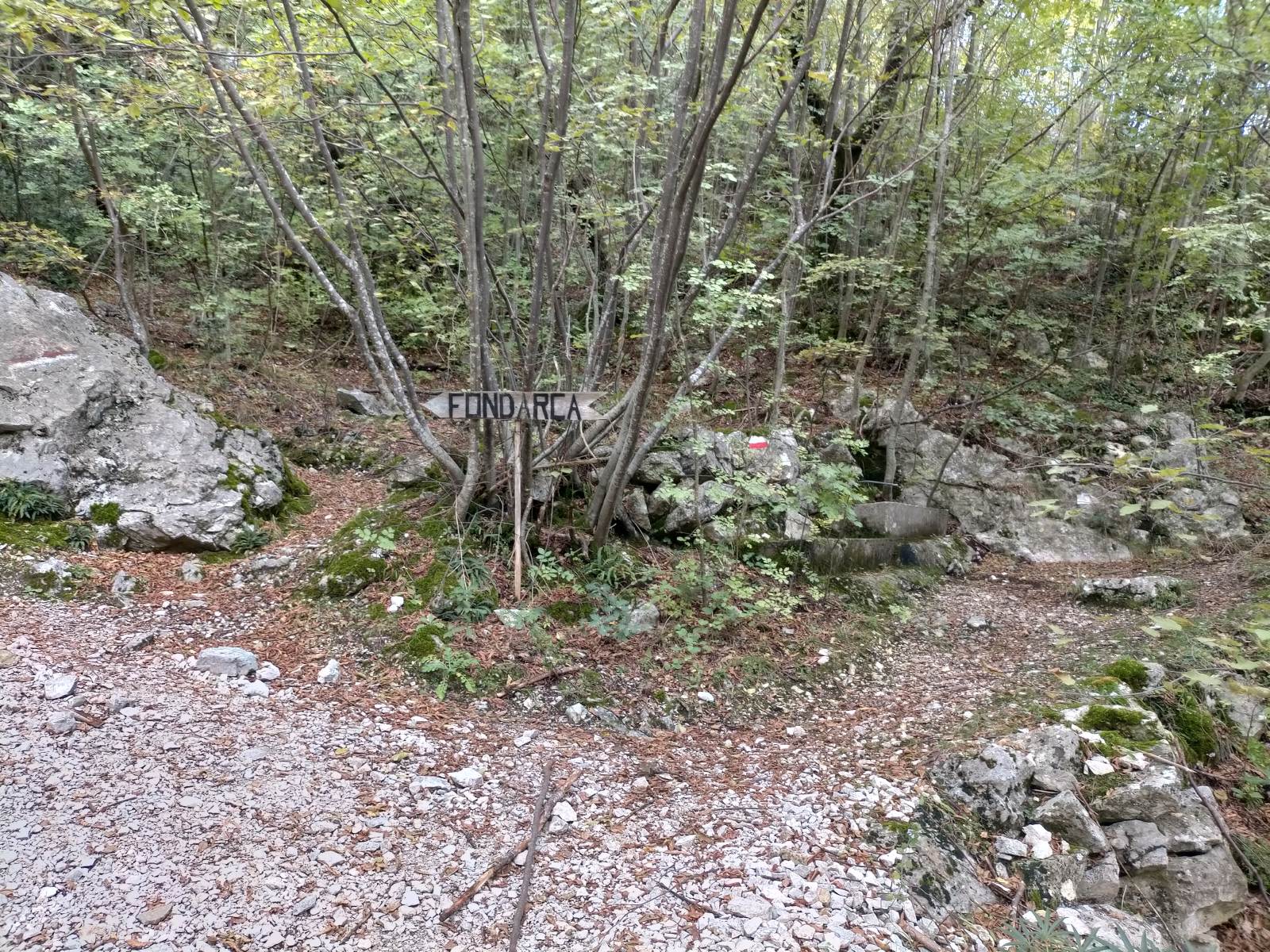 Arrivando da Pieia, il bivio verso l’ingresso inferiore e superiore di Fondarca Ottobre 2024