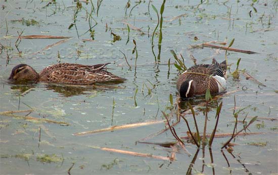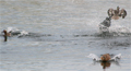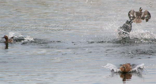 Marzaiole attaccate da una Folaga. Stagno Urbani lungo il F. Metauro a Fano, aprile 2006