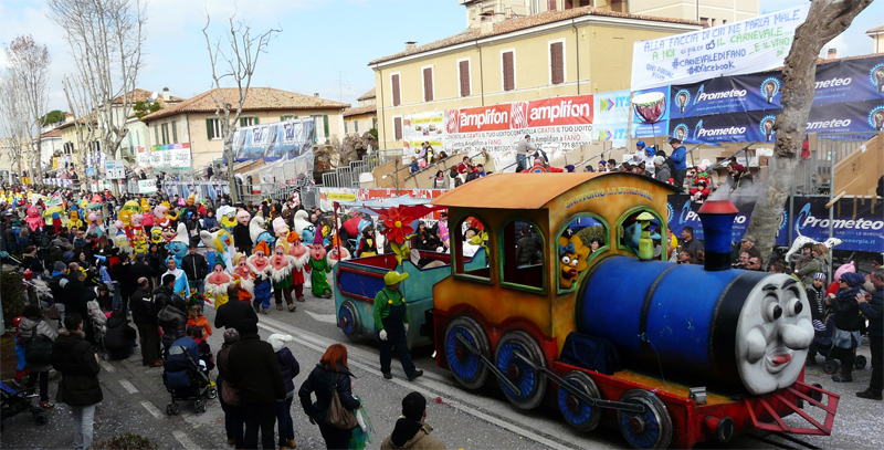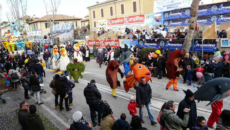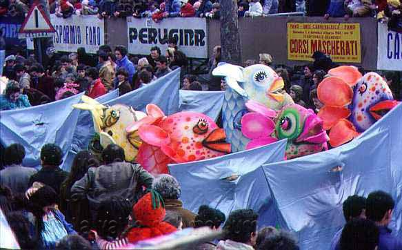 Mascherata "I Romani e la guerra dei coriandoli", realizzata dagli alunni dell'Ist. Magistrale "G.Carducci" diretti dai prof. Pierluigi Piccinetti e Maria Letizia Olivieri