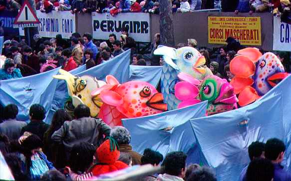Mascherata "Sinfonia della stagioni", realizzata dagli alunni dell'Istituto Magistrale G. Carducci diretti dai prof. Pierluigi Piccinetti e Maria Letizia Olivieri.