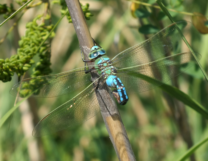 Maschio di Anax imperator intento a trasferire lo sperma dal poro genitale all'organo copulatore situato nella faccia inferiore del 2° segmento addominale, Stagno Urbani lungo il F. Metauro a Fano, agosto 2012