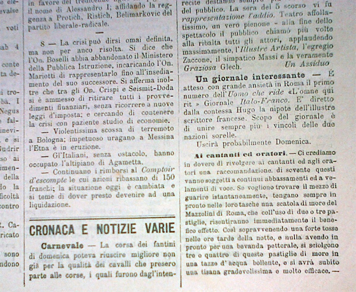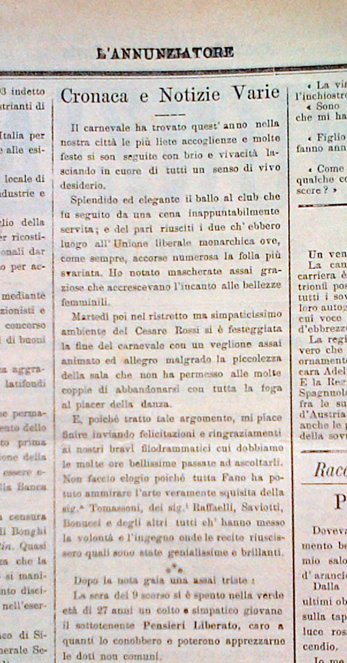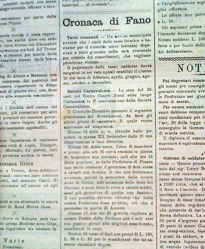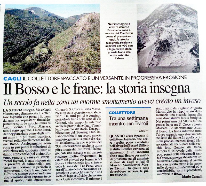 Articolo di stampa dalla cronaca locale, con la notizia della presenza circa un secolo fa di una raccolta d'acqua formatasi nel T. Bosso in località Tre Pozzi a seguito di una frana