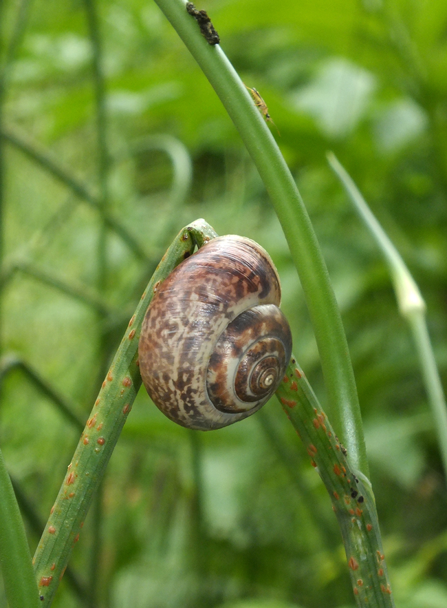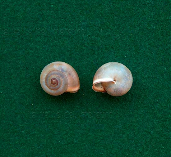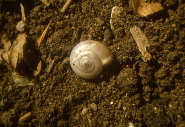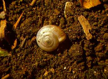 Monacha cartusiana con aperura otturata dall'epifragma, F. Metauro a 8 km dalla foce, luglio 2005