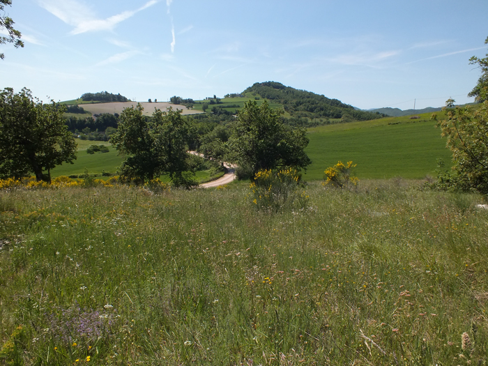 Montalto Tarugo (Fossombrone) con sullo sfondo il M. Pietralata (Monti del Furlo), marzo 2008