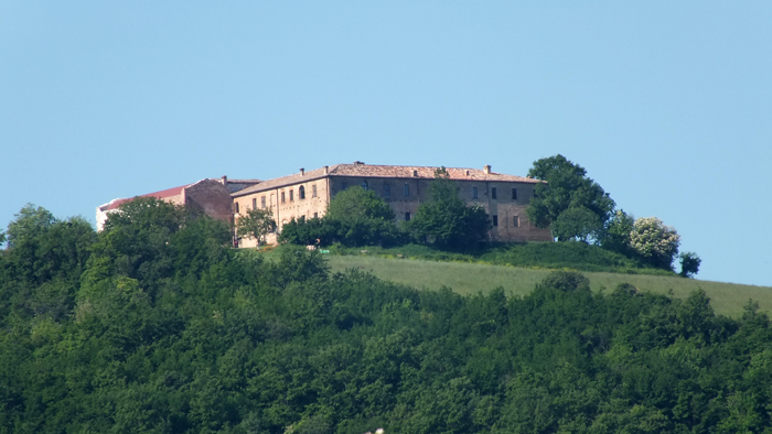 Monastero dei Girolamini a Montebello. Sulla sinistra i ruderi della Chiesa della SS. Trinità (da Adeguamento al P.P.A.R. del PRG del Comune Isola del Piano)