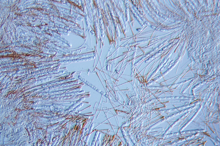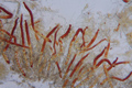 Aschi e parafisi di Sarcoscypha coccinea, Centinarola di Fano, gennaio 2013