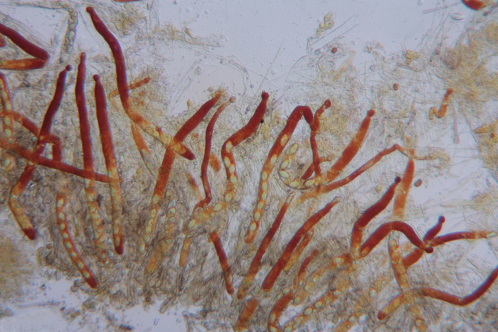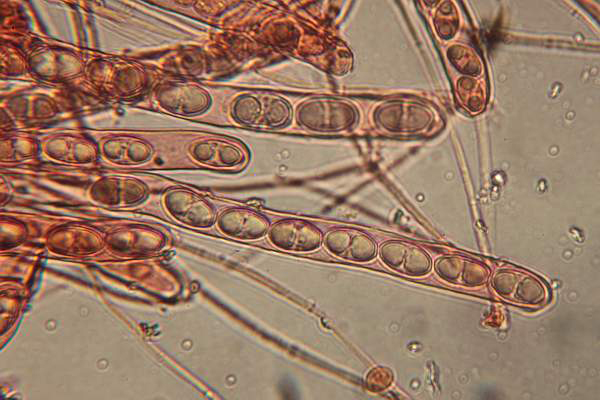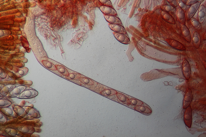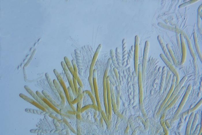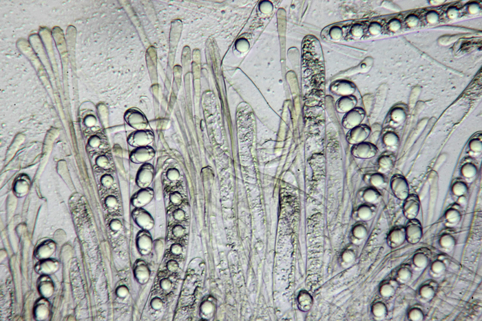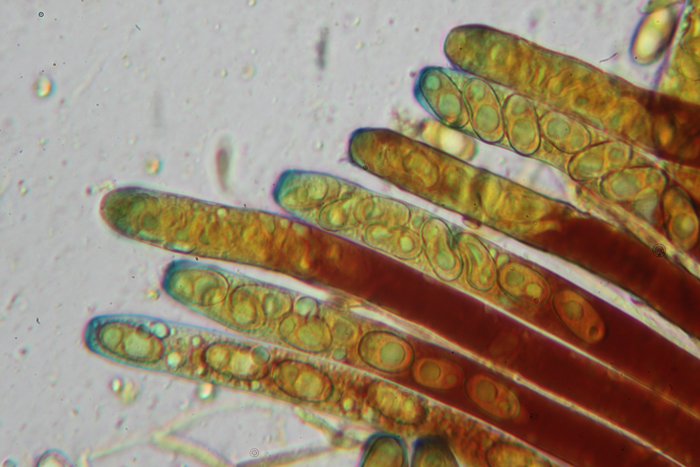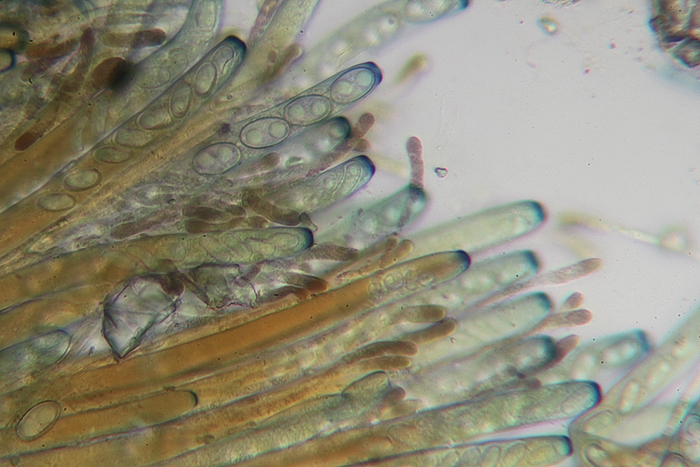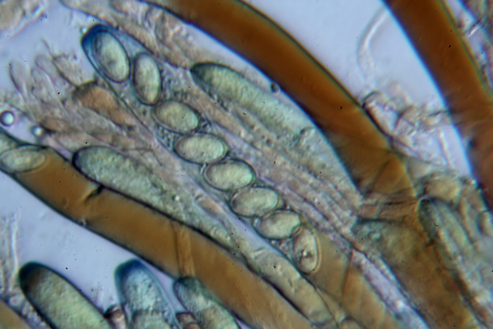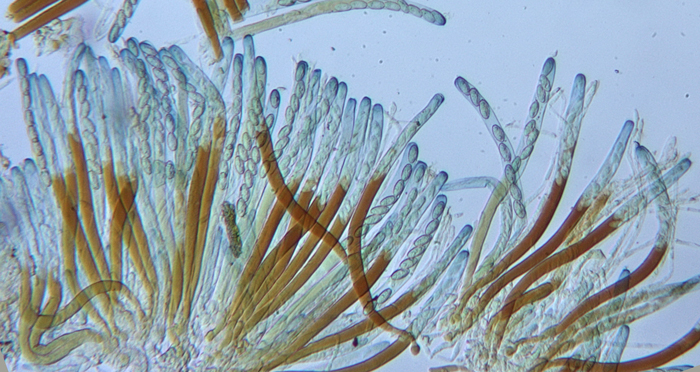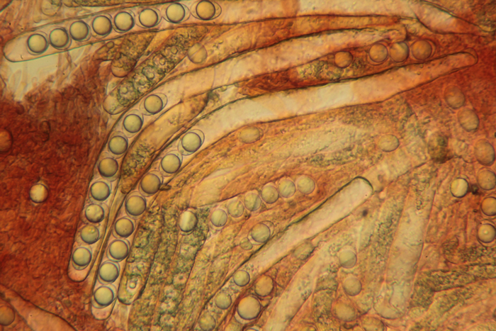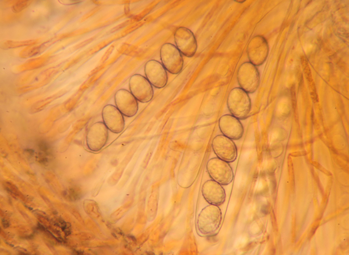 Aschi e spore di Peziza ampelina, Rio Secco (Fano e Cartoceto), aprile 2013