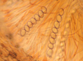 Aschi ottosporici di Scutellinia setosa, Bosco di Montevecchio a Fano, maggio 2013
