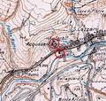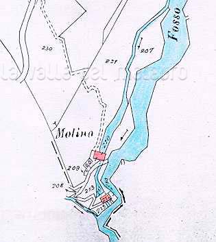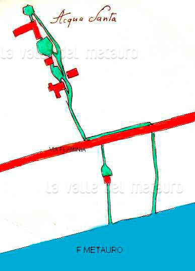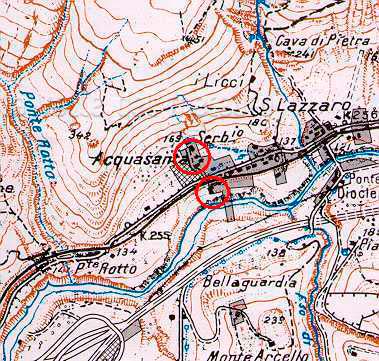 Mulini dell'Acquasanta (Fossombrone). Carta top. Reg. Marche 1:25.000 109 II (autorizz. Ufficio Cartografia e Inform. Territoriali Reg. Marche del 13-3-1999 e aut. IGM n. 4877 del 2-11-1998)