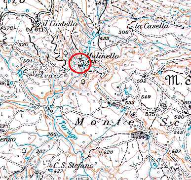 Mulinello. Carta top. Reg. Marche 1:25.000 116 I (autorizz. Ufficio Cartografia e Inform. Territoriali Reg. Marche del 13-3-1999 e aut. IGM n. 4877 del 2-11-1998)