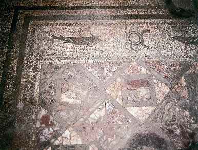 Mosaico "dei pesci" (particolare) venuto alla luce nel 1929 sotto l'attuale sede centrale della Cassa di Risparmio di Fano.
