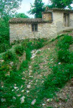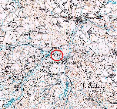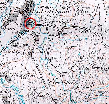 Mulino Bellucci a Isola di Fano. Carta Reg. Marche 1:25.000 116 I (autorizz. IGM n. 4877 del 2-11-1998)