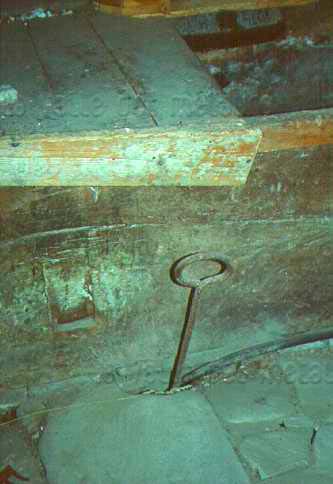 Mulino Brincivalli a San Martino del Piano, sul Candigliano (Comune di Apecchio). Leva che regola la distanza tra le macine