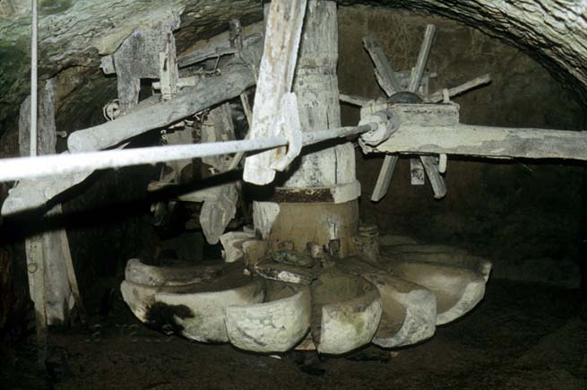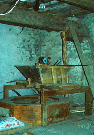 Mulino Brincivalli a San Martino del Piano, sul Candigliano (Comune di Apecchio): macina e tramoggia