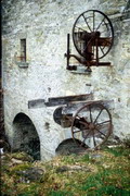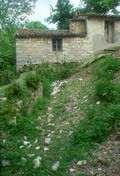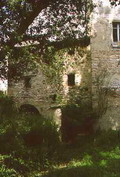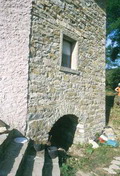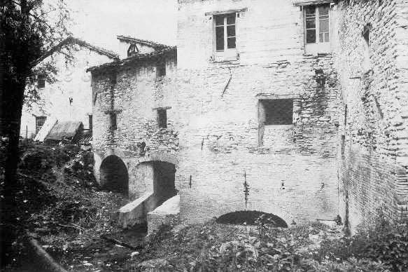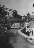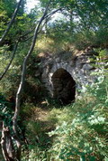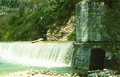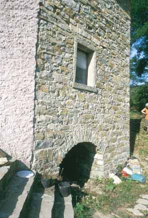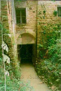 Mulini dell'Acquasanta, uscita dell'acqua dall'edificio superiore e prima gora, luglio 1996