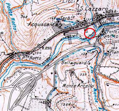 Mulini di Ponte dei Saltelli a Fossombrone. Carta Top. Reg. Marche 1:25.000 109 II (autorizz. IGM 4877/98)