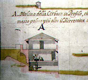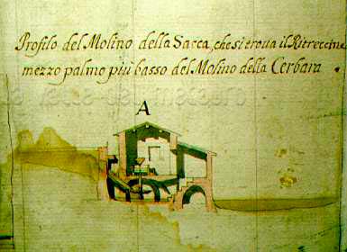Mulino della Cerbara (mappa del sec. XVIII). Biblioteca Federiciana di Fano, Sala Manoscritti, Disegni, B 3 -100.