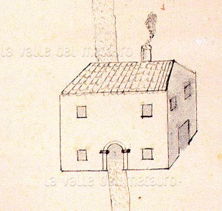 Mulino della Cerbara: casa del portinaro (mappa del sec. XVIII). Biblioteca Federiciana di Fano, Disegni, B -3- 96