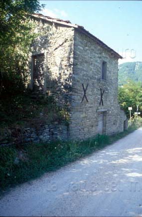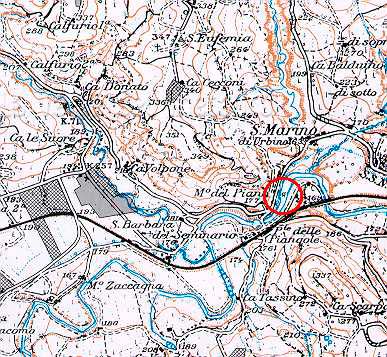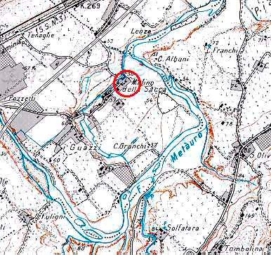 Mulino della Sacca (Serrungarina). Carta Reg. Marche 1:25.000 109 II (autorizz. IGM n. 4877 del 2-11-1998)