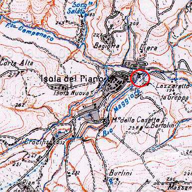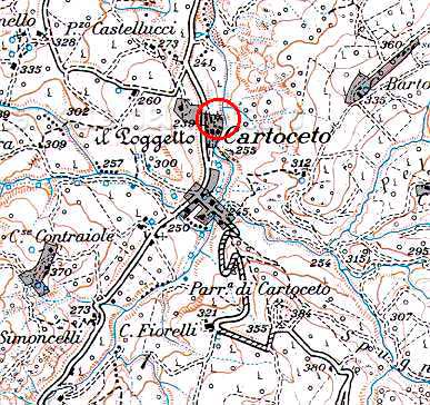 Mulino di Cartoceto di Pergola. Carta top. Reg. Marche 1:25.000 116 I (autorizz. Ufficio Cartografia e Inform. Territoriali Reg. Marche del 13-3-1999 e aut. IGM n. 4877 del 2-11-1998)