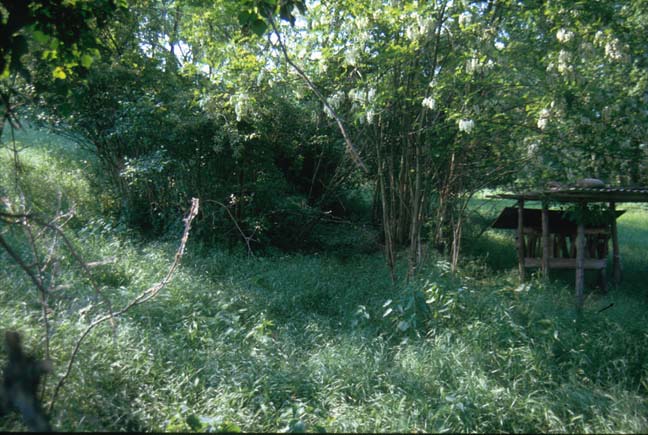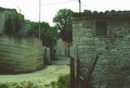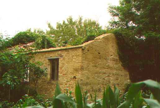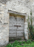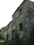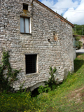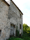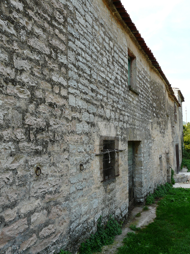 Mulino di Cartoceto di Pergola, luglio 2010. A destra l'edificio del mulino, a sinistra il muro terminale del bottaccio