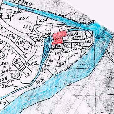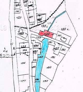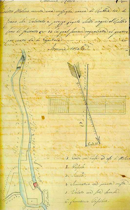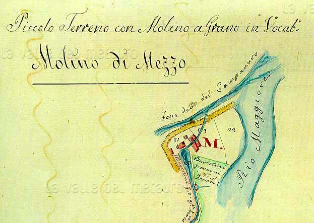 Mulino di Mezzo (mappa del 1834). S.A.S.Fa., A.N., not. Medardo Abbondanzieri, vol. 52 (1834) cc. 9-14.