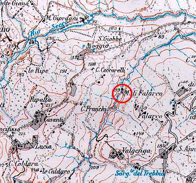 Mulino di Falarco. Carta top. Reg. Marche 1:25.000 109 II (autorizz. Ufficio Cartografia e Inform. Territoriali Reg. Marche del 13-3-1999 e aut. IGM n. 4877 del 2-11-1998)