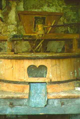 Mulino di Cartoceto di Pergola: Impianto molitorio, agosto 1996. Possedeva tre macine: una per il frumento, una per il granoturco e la terza per la ghianda