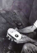 Mulino di Cartoceto di Pergola: vaschetta per colore usato per marcare il peso sui sacchi di tela