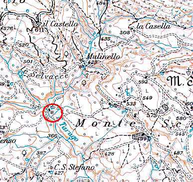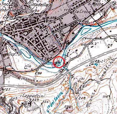 Mulino di Sotto. Carta top. Reg. Marche 1:25.000 109 II (autorizz. Ufficio Cartografia e Inform. Territoriali Reg. Marche del 13-3-1999 e aut. IGM n. 4877 del 2-11-1998)
