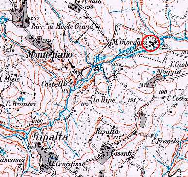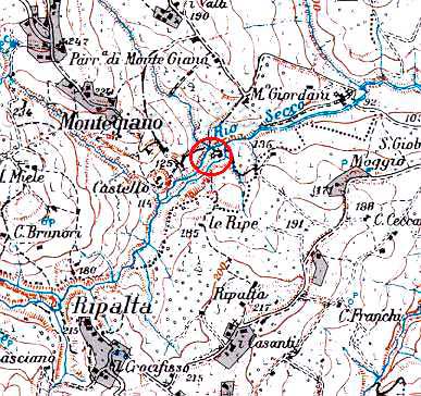 Mulino Giordani. Carta top. Reg. Marche 1:25.000 109 II (autorizz. Ufficio Cartografia e Inform. Territoriali Reg. Marche del 13-3-1999 e aut. IGM n. 4877 del 2-11-1998)