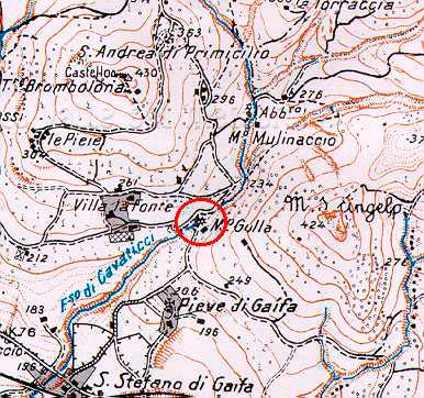 Mulino Gulla. Carta top. Reg. Marche 1:25.000 109 II (autorizz. Ufficio Cartografia e Inform. Territoriali Reg. Marche del 13-3-1999 e aut. IGM n. 4877 del 2-11-1998)