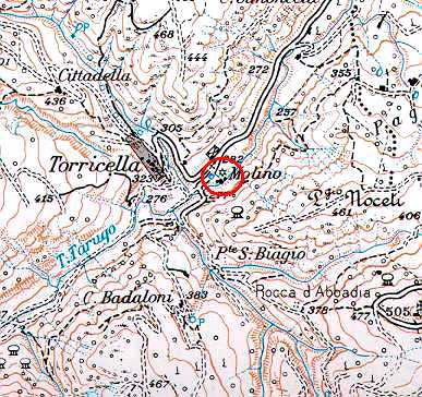 Mulino di Torricella. Carta top. Reg. Marche 1:25.000 116 I (autorizz. Ufficio Cartografia e Inform. Territoriali Reg. Marche del 13-3-1999 e aut. IGM n. 4877 del 2-11-1998)
