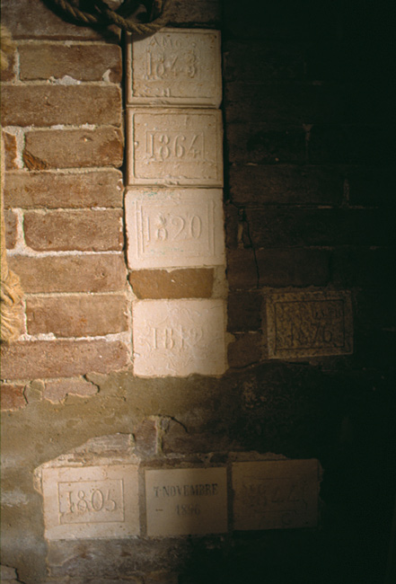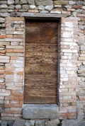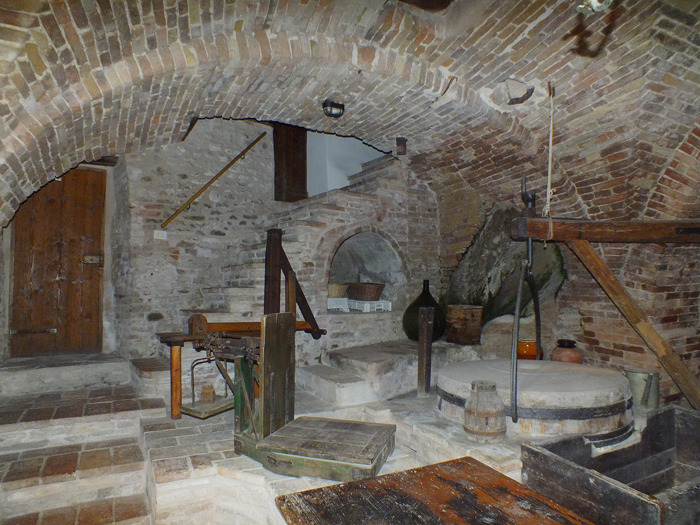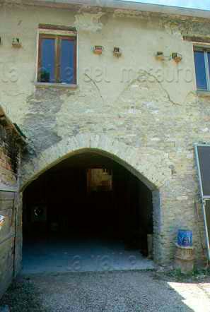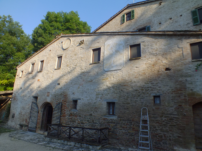Mulino La Ricavata ad Urbania, con orologio solare posto tra due finestre in alto, luglio 2014